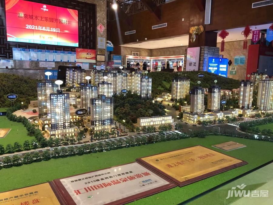 遵义汇川温泉城别墅位于遵义市汇川区董公寺镇内,汇川大道旁,距区政府2.5公里,距市政府6公里,距遵义会议会址12公里,处于遵义市100平方公里山体森林公园范围内的黄金边缘地带,地理位置优越,交通便捷,自然环境良好。遵义汇川国际温泉旅游城规划用地总面积约1000亩,总建筑面积120多万平方米,总投资40多亿元。现将投入建设的一期核心区,建设规模201亩,建有温泉接待中心、休闲购物中心、温泉乐园、水上娱乐中心、康复疗养中心、高尚住宅等。